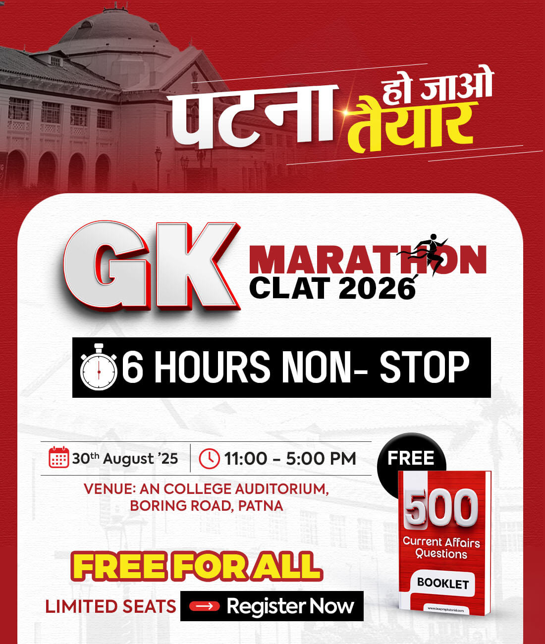 It’s open for all CLAT 2026 & 2027 aspirants, as well as students preparing for AILET, SLAT, MH-CET Law, and other law entrance exams.